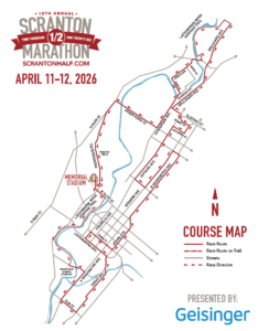 The Scranton Half Marathon course gives runners of all backgrounds and ability levels the opportunity to experience the City of Scranton from a unique perspective. The course is predominantly roads/blacktop, with a small section of crushed stone trails, which provides a physiological and psychological respite at the perfect point late in the race!